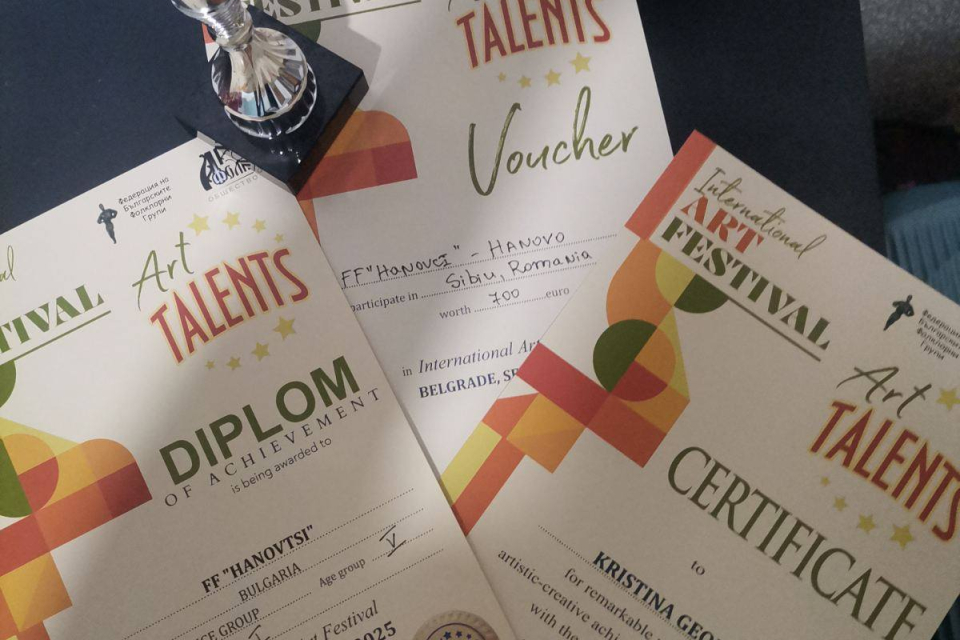 През уикенда фолклорна формация „Хановци“, с. Ханово и танцова формация „Хоро на мегдана“, с. Ботево представиха с успех община „Тунджа“ и България на Международния фестивал „Арт таланти“, проведен в Белград, Сърбия.
