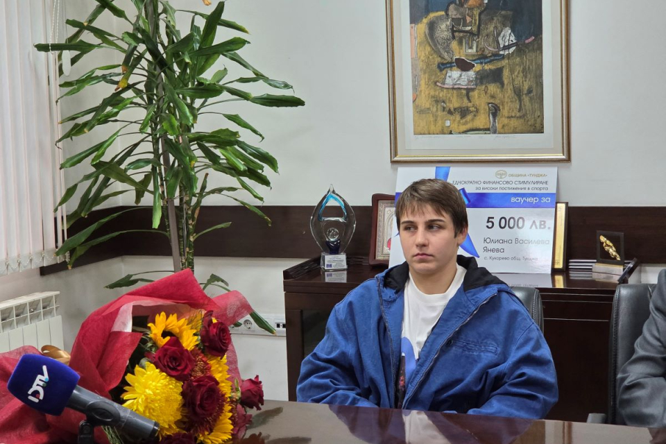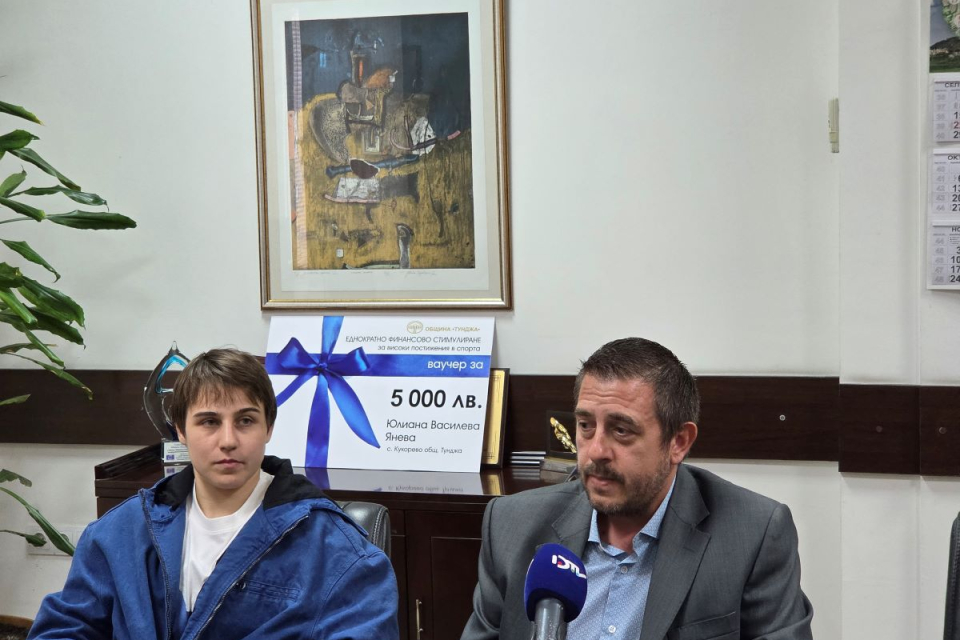 Състезателката по борба Юлиана Янева получи еднократно финансово стимулиране от Община „Тунджа“ за високи постижения в спорта на 24.10.2025 г.