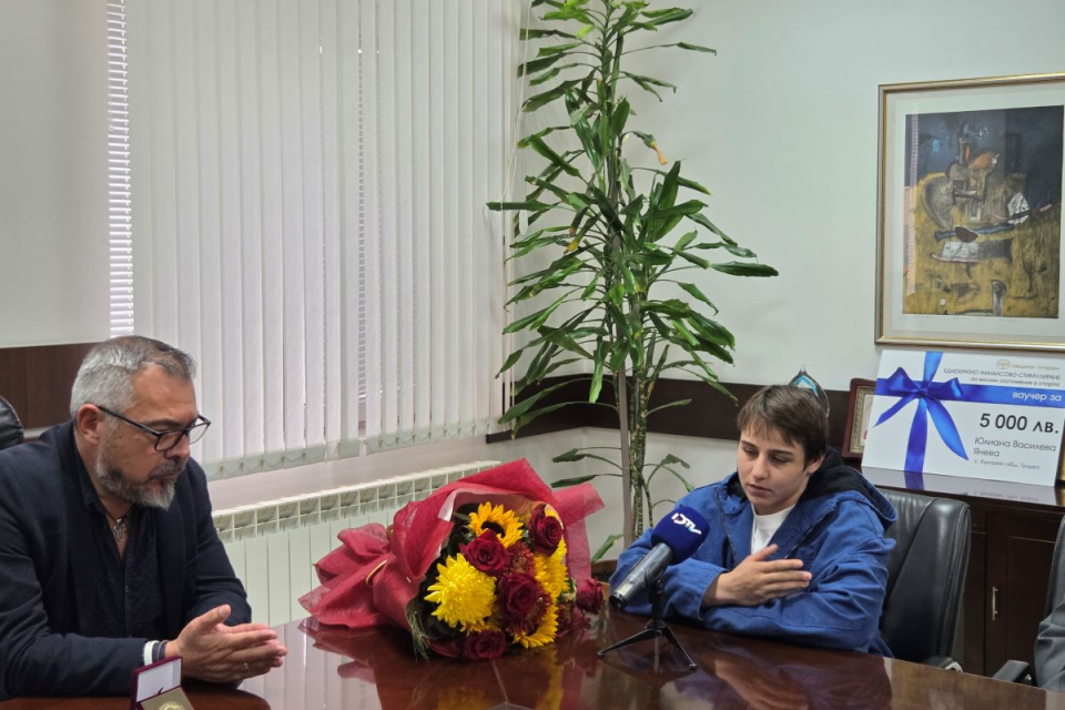 На Юлиана Янева бяха връчени благодарствен плакет и ваучер за парична премия на стойност 5 хиляди лева.