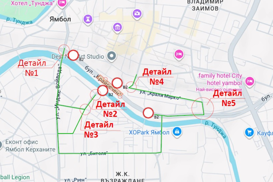 Във връзка с дейностите по подготовка и полагане на асфалтови настилки на обект: „Изграждане на пътно кръгово кръстовище на бул. „Крайречен“ и ул. „Крали Марко“, гр. Ямбол“ (кръстовище „Биков мост“), изпълнителят на обекта уведомява гражданите, че в периода от 28 октомври 2025 г. до 9 ноември 2025 г., включително, ще бъде извършено пълно затваряне на кръстовището.
